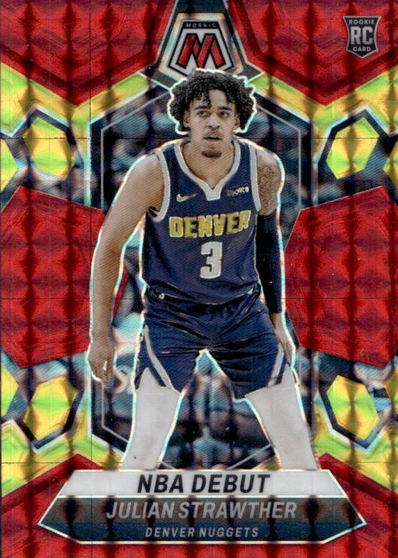 The Julian Strawther 2023 Mosaic #256 NBA Debut - Choice Fusion Red & Yellow /75 Rookie card in Raw condition has not changed in price in the last 30 days and was last sold for $7.26 .
