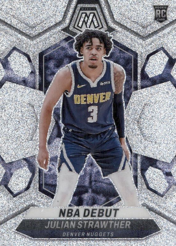 The Julian Strawther 2023 Mosaic #256 NBA Debut - Glitter /(SSP) Rookie card in Raw condition has not changed in price in the last 30 days and was last sold for $1.17 .