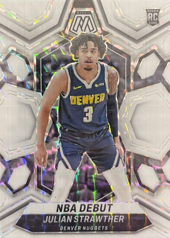 The Julian Strawther 2023 Mosaic #256 NBA Debut - White /25 Rookie card in Raw condition has not changed in price in the last 30 days and was last sold for $5.50 .