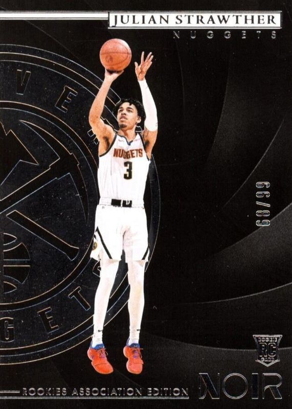 This card is 1 of 21 Julian Strawther's card variations in the 2023 Noir set being tracked by Sports Card Investor, including Rookies Icon Edition /99, Rookies Metal Frame City Edition /25, Rookies Association Edition - Holo Silver /49, Rookies Icon Edition - Holo Silver /49, and Rookies Association Edition - Holo Red /25.