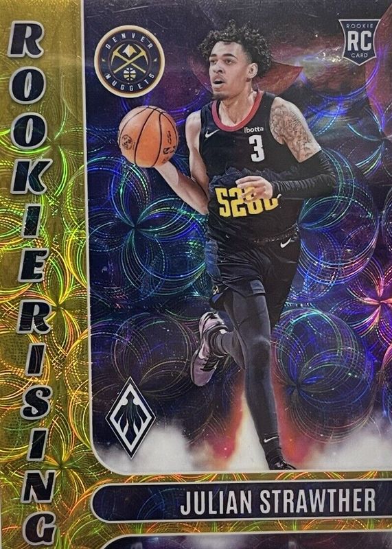 The Julian Strawther 2023 Phoenix #22 Rookie Rising - International Gold /10 card in Raw condition has not changed in price in the last 30 days and was last sold for $26.00 .