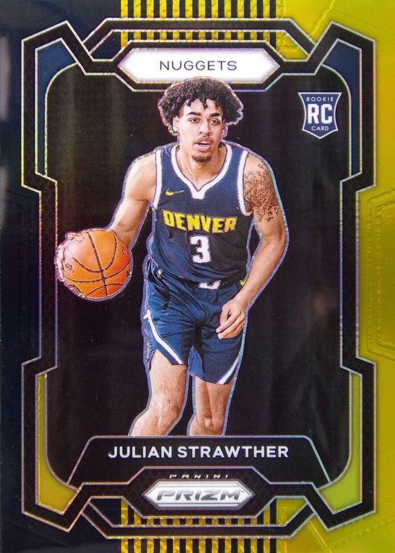 The Julian Strawther 2023 Prizm #133 Black Gold /5 Rookie card in Raw condition has not changed in price in the last 30 days and was last sold for $605.72 .