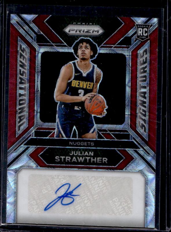 The Julian Strawther 2023 Prizm #SS-JI Sensational Signatures - Choice /88 Rookie card is 1 of 98 Julian Strawther's card variations in the 2023 Prizm set being tracked by Sports Card Investor, including Base, Blue Wave, Choice Blue Yellow Green, Fast Break, and Green.