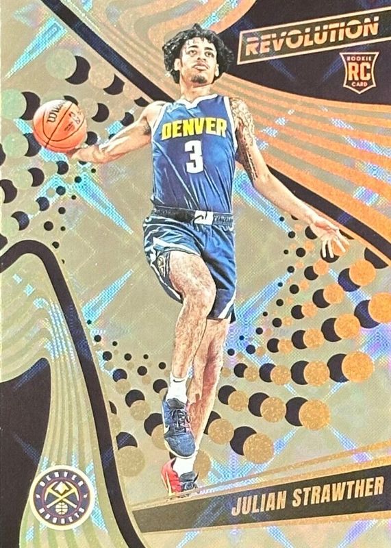 The Julian Strawther 2023 Revolution #129 Galactic /(SSP) Rookie card in Raw condition has not changed in price in the last 30 days and was last sold for $16.50 .