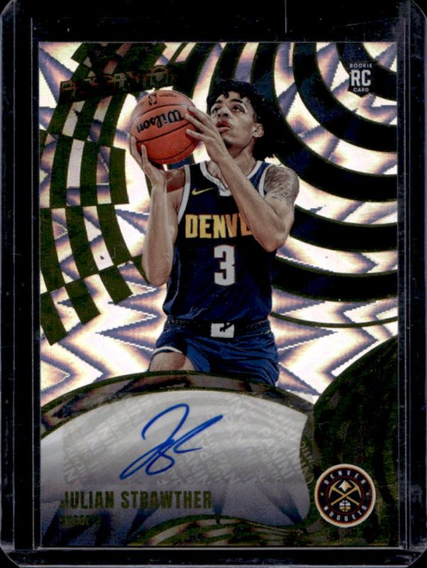 The Julian Strawther 2023 Revolution #RA-JSN Rookie Autographs - Fractal /100 card is 1 of 29 Julian Strawther's card variations in the 2023 Revolution set being tracked by Sports Card Investor, including Base, Astro, Avalanche, Blizzard, and Chinese New Year.