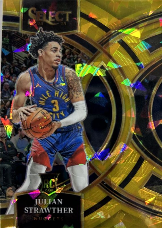 This card is 1 of 135 Julian Strawther's card variations in the 2023 Select set being tracked by Sports Card Investor, including Courtside, Mezzanine, Premier Level, Courtside Blue Cracked Ice, and Courtside Blue Prizm.