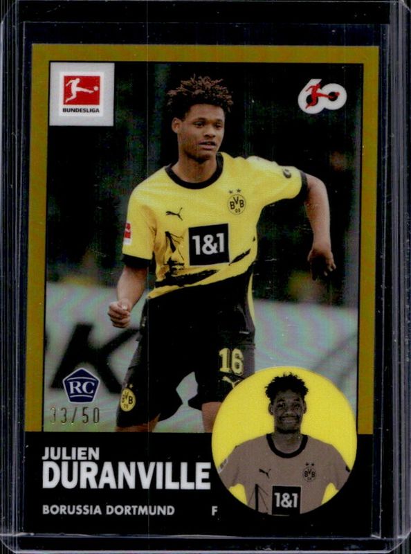 Julien Duranville 2023 Topps Chrome Bundesliga #27 Gold Refractor /50 Rookie RAW Price Guide