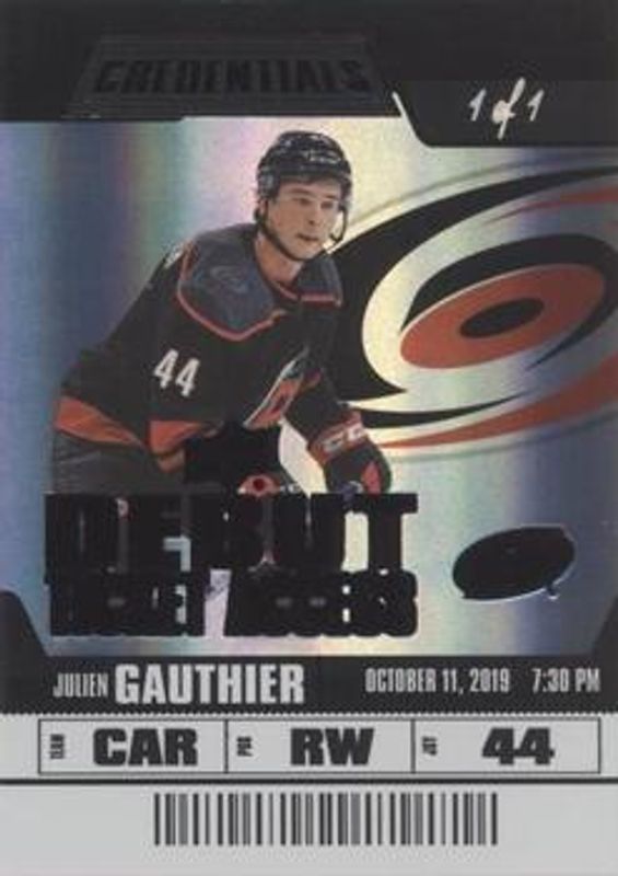 Julien Gauthier 2019 Upper Deck Credentials #94 Black /1 Rookie RAW