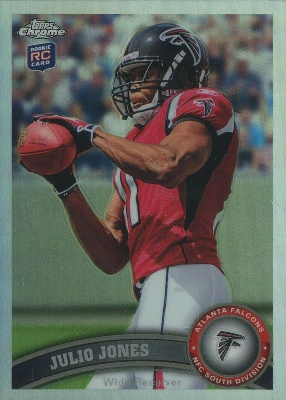 The Julio Jones 2011 Topps Chrome #131 Refractor Rookie card in Raw condition has moved down -$7.50 (-34.9%) in the last 30 days and was last sold for $14.00 .