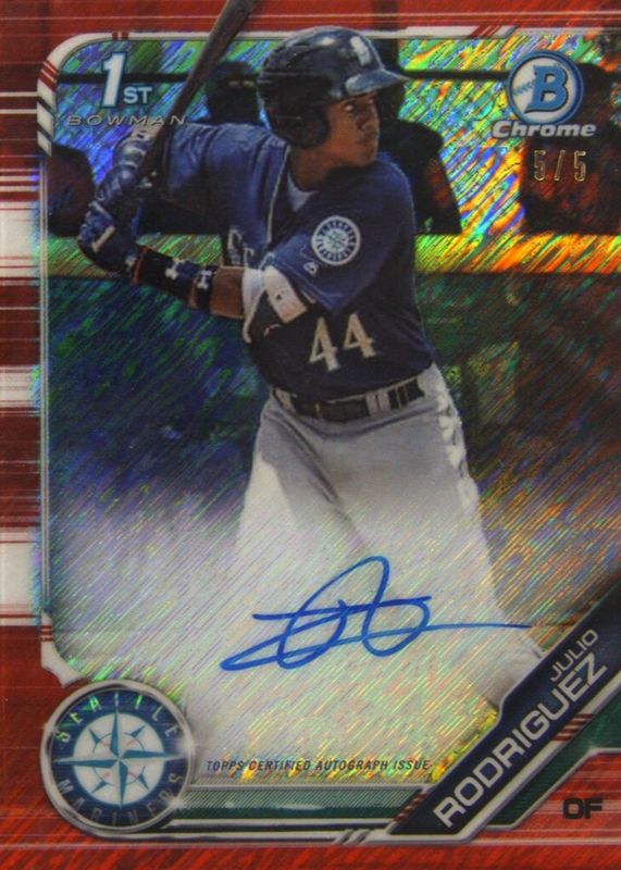 Julio Rodriguez 2019 Bowman #CPA-JRO Chrome Prospect Auto - Red Shimmer Refractor /5 (1st) RAW Price Guide