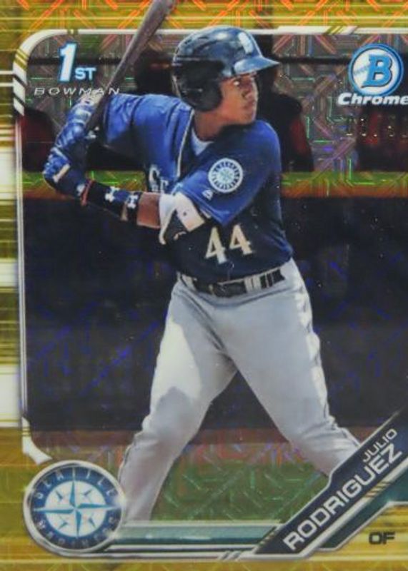 Recent Sales of Julio Rodriguez 2019 Bowman Mega Box #BCP-33 Chrome Prospects - Gold Mojo Refractor /50 (1st) Raw