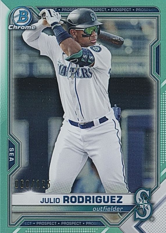 Julio Rodriguez 2021 Bowman #BCP-86 Chrome Prospects - Aqua Refractor /125 RAW Price Guide