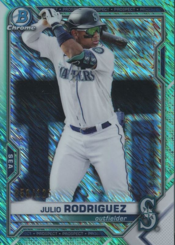 Julio Rodriguez 2021 Bowman #BCP-86 Chrome Prospects - Aqua Shimmer Refractor /125 RAW Price Guide
