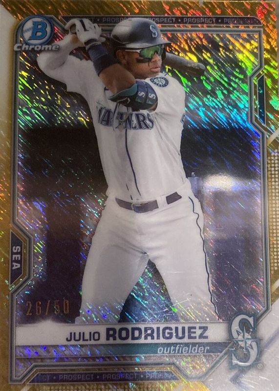 Julio Rodriguez 2021 Bowman #BCP-86 Chrome Prospects - Gold Shimmer Refractor /50 RAW Price Guide