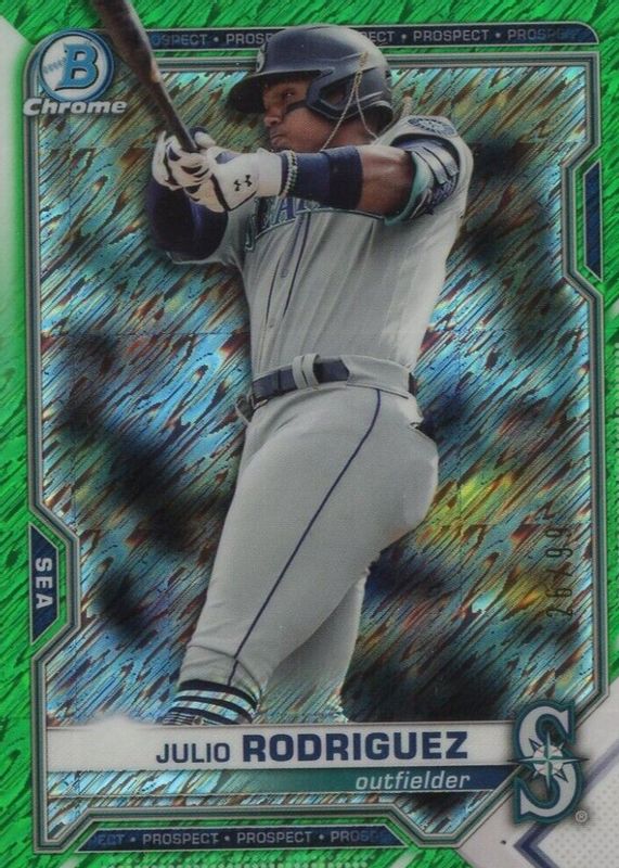 Best Prices Available For Sale of Julio Rodriguez 2021 Bowman Chrome #BCP-231 Prospects - Green Shimmer Refractor /99