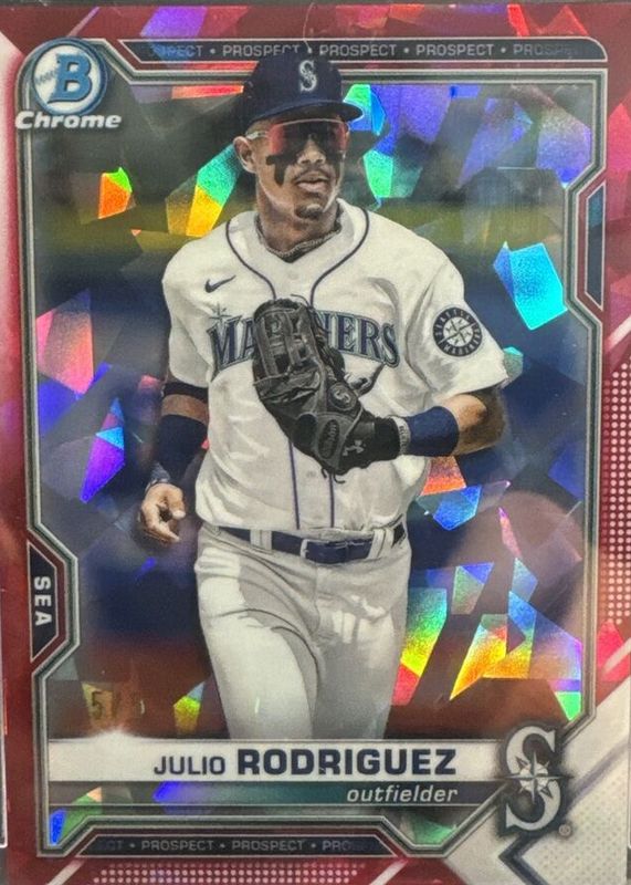 Best Prices Available For Sale of Julio Rodriguez 2021 Bowman Draft Sapphire Edition #BDC-145 Chrome - Red /5