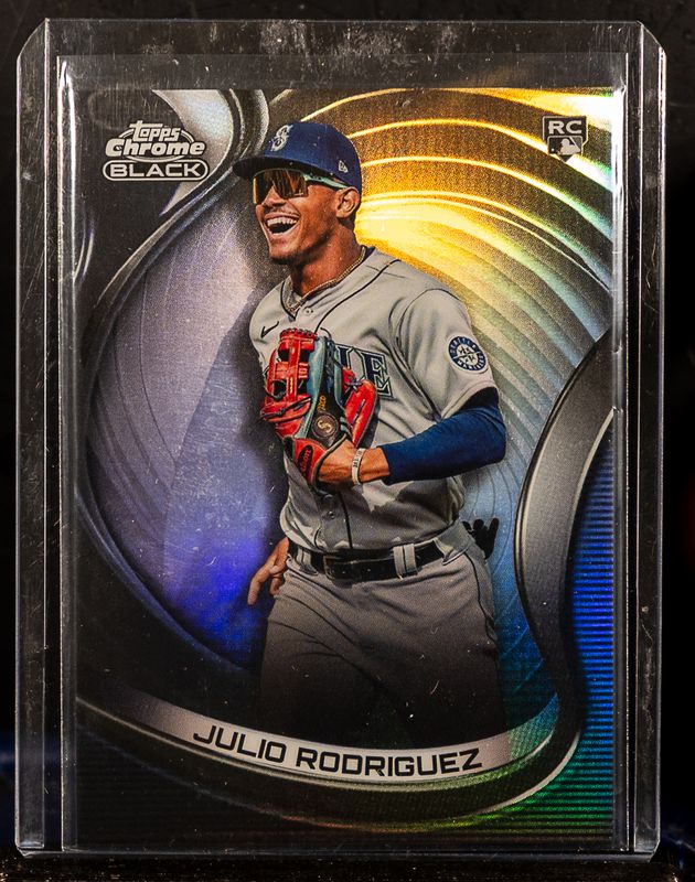 The Julio Rodriguez 2022 Topps Chrome Black #10 Refractor /199 Rookie card is 1 of 23 Julio Rodriguez's card variations in the 2022 Topps Chrome Black set being tracked by Sports Card Investor, including Base, Purple Mini Diamond Refractor /150, Green Atomic Refractor /99, Green Refractor /99, and Blue Refractor /75.