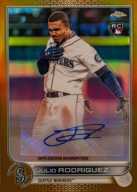 Best Prices Available For Sale of Julio Rodriguez 2022 Topps Chrome Update #AC-JRO Autographs - Gold Refractor /50