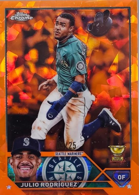 The Julio Rodriguez 2023 Topps Chrome Sapphire Edition #330 Orange /25 card in Raw condition has not changed in price in the last 30 days and was last sold for $142.58 .