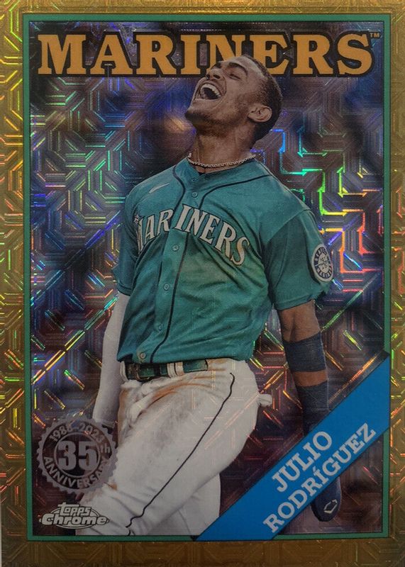 Best Prices Available For Sale of Julio Rodriguez 2023 Topps Silver Pack #T88C-38 1988 Chrome Promo - Gold Refractor (Series 1) /50