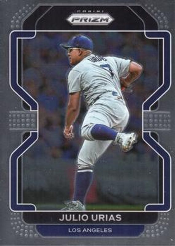 The Julio Urias 2022 Prizm #79 Base card is 1 of 38 Julio Urias' card variations in the 2022 Prizm set being tracked by Sports Card Investor, including Blue, Blue Velocity, Carolina Blue, Cosmic Haze, and Giraffe.