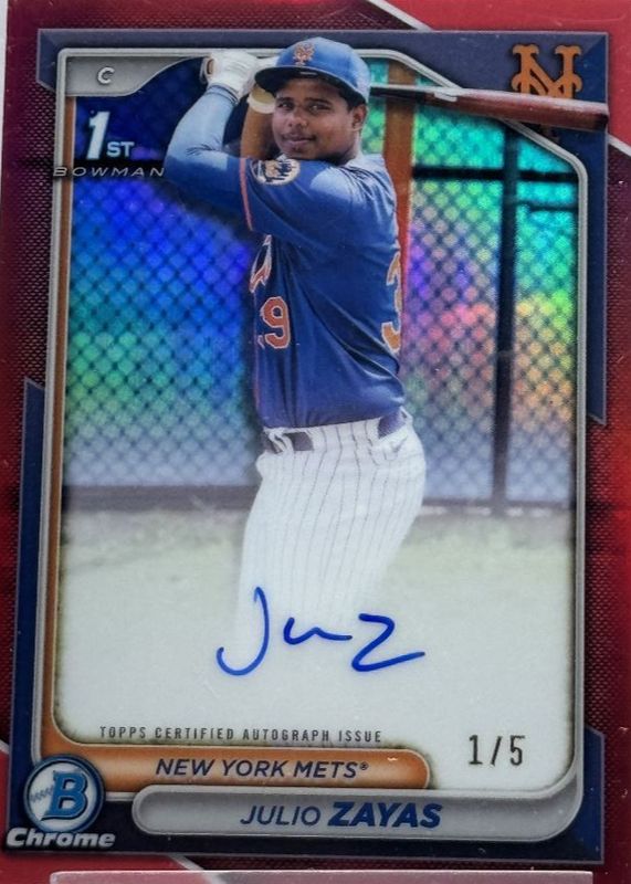 Auctions Ending Soon for Julio Zayas 2024 Bowman Chrome #CPA-JZ Prospect Auto - Red Refractor /5 (1st) RAW