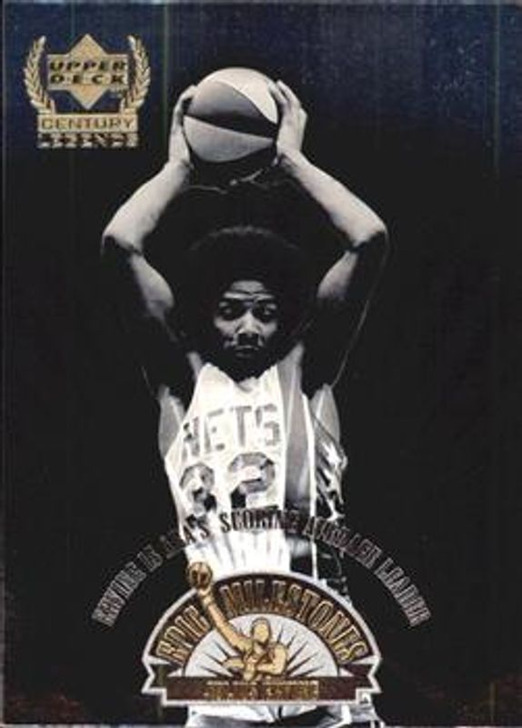 The Julius Erving 1998 Upper Deck Century Legends #EM5 Epic Milestones card is 1 of 8 Julius Erving's card variations in the 1998 Upper Deck Century Legends set being tracked by Sports Card Investor, including Base, Century Collection /100, All Century Team, Epic Signatures, and Epic Signatures Century /100.