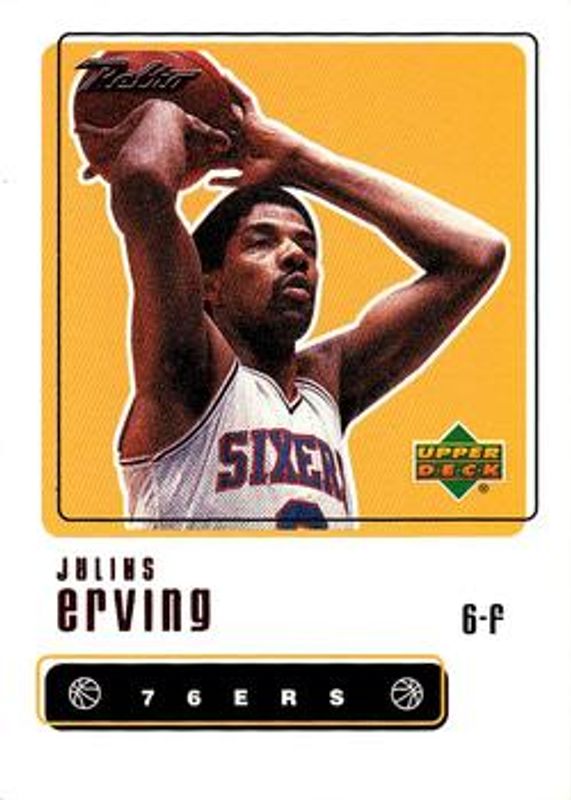 The Julius Erving 1999 Upper Deck Retro #68 Base card is 1 of 9 Julius Erving's card variations in the 1999 Upper Deck Retro set being tracked by Sports Card Investor, including Gold /250, Platinum /1, Distant Replay, Lunchboxes, and Old School/New School.