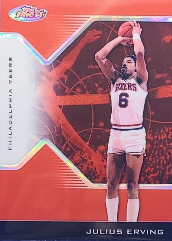 This card is 1 of 16 Julius Erving's card variations in the 2004 Topps Finest set being tracked by Sports Card Investor, including Refractor /249, X-Fractor /199, Red X-Fractor /99, Blue Refractor /50, and Green Refractor /49.