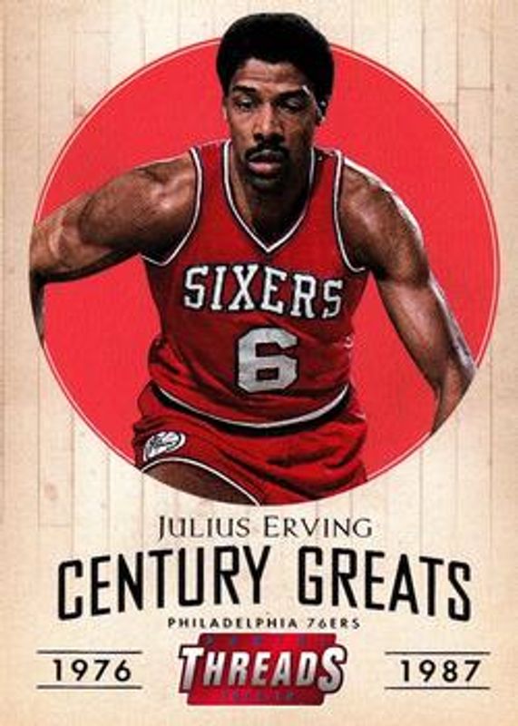 The Julius Erving 2014 Threads #3 Century Greats card is 1 of 15 Julius Erving's card variations in the 2014 Threads set being tracked by Sports Card Investor, including Base, Century Proof Red /199, Century Proof Gold /25, Century Proof Platinum /1, and ABA Legends.
