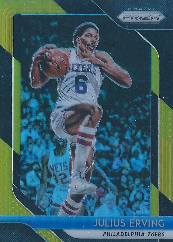 This card is 1 of 27 Julius Erving's card variations in the 2018 Prizm set being tracked by Sports Card Investor, including Red /299, Blue /199, Fast Break Blue /175, Purple Ice /149, and Fast Break Red /125.