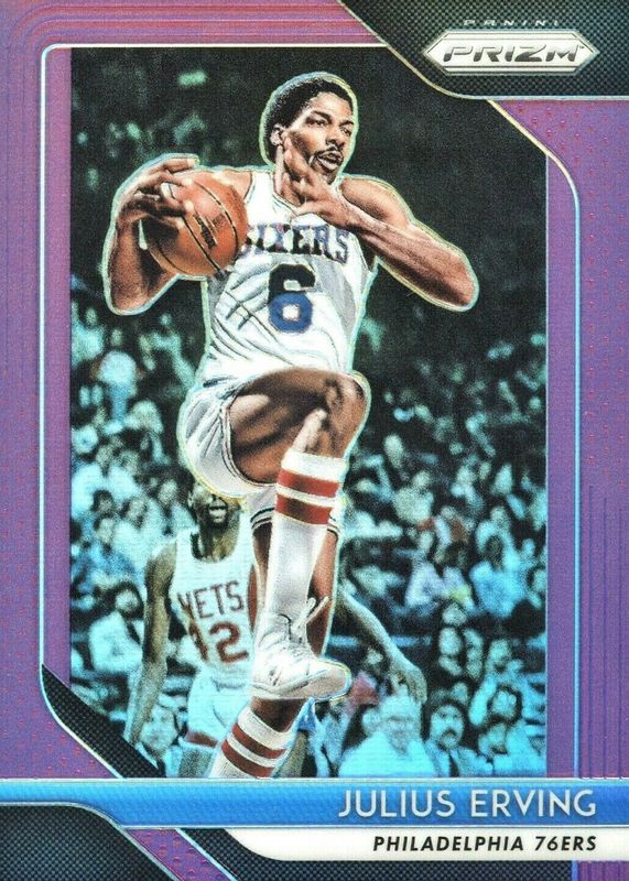 2018-19 Panini Prizm Julius Erving Philadelphia 76ers Purple Refractor #ed 74/75