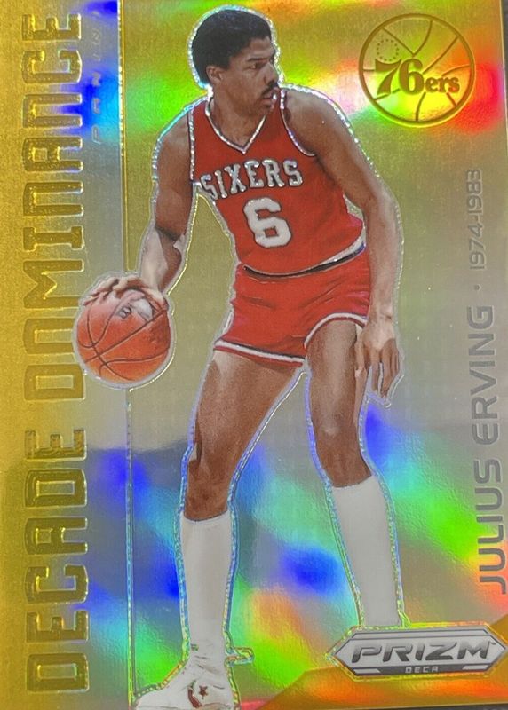 Best Prices Available For Sale of Julius Erving 2023 Prizm Deca #8 Decade Dominance - Gold /10