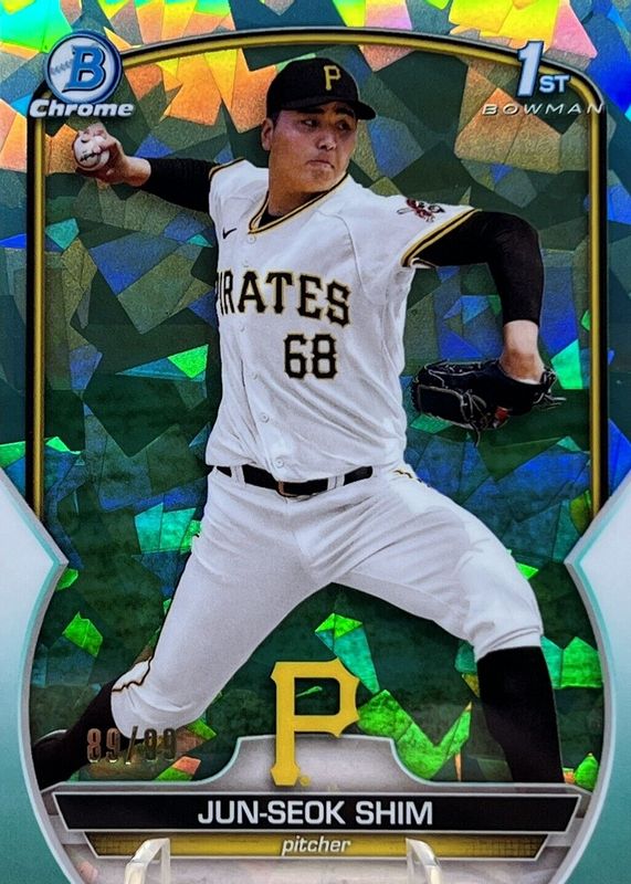 This card is 1 of 7 Jun-Seok Shim's card variations in the 2023 Bowman Chrome Sapphire Edition set being tracked by Sports Card Investor, including Prospects (1st), Prospects - Orange /75 (1st), Prospects - Yellow /50 (1st), Prospects - Purple /25 (1st), and Prospects - Red /5 (1st).