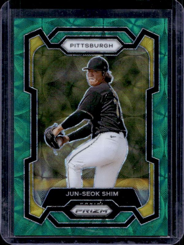 The Jun-Seok Shim 2024 Prizm #290 Green Scope /75 card is 1 of 42 Jun-Seok Shim's card variations in the 2024 Prizm set being tracked by Sports Card Investor, including Base, Blue Ice, Green, Green Ice, and Pink Ice.