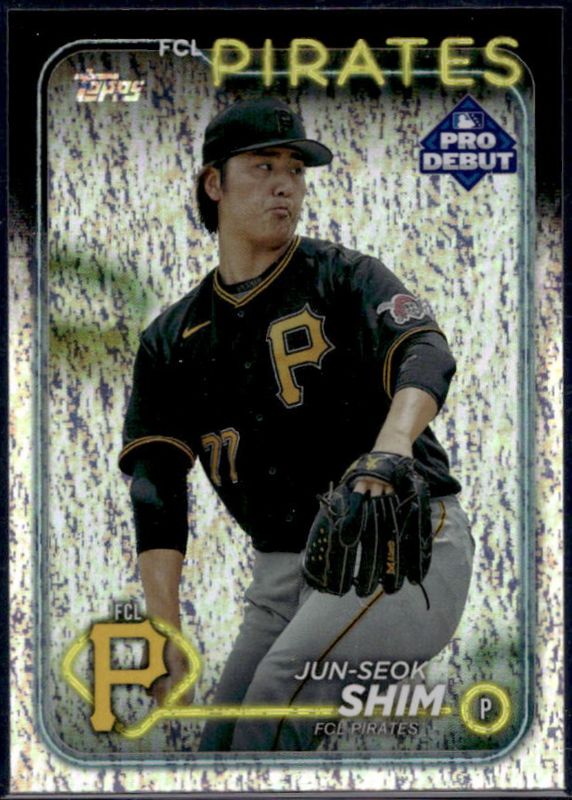 The Jun-Seok Shim 2024 Topps Pro Debut #PD-59 Sparkle Foil /175 card is 1 of 43 Jun-Seok Shim's card variations in the 2024 Topps Pro Debut set being tracked by Sports Card Investor, including Base, Fuchsia Foil /199, Blue Foil /150, Green Foil /99, and Aqua Foil /75.