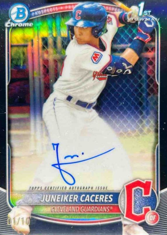 Juneiker Caceres 2025 Bowman Chrome #CPA-JUC Prospect Auto - Black Refractor /10 (1st) RAW Price Guide
