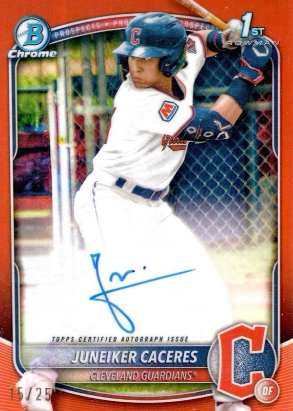 Juneiker Caceres 2025 Bowman Chrome #CPA-JUC Prospect Auto - Orange Refractor /25 (1st) RAW Price Guide
