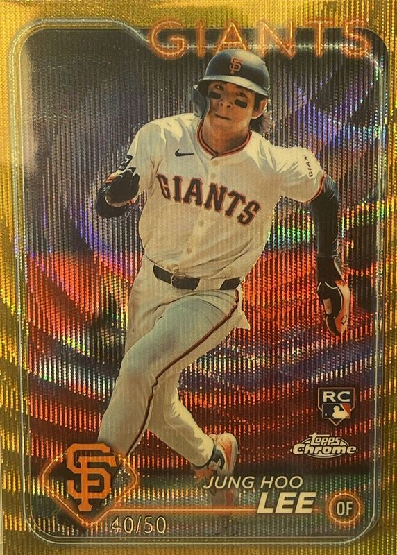 Auctions Ending Soon for Jung Hoo Lee 2024 Topps Chrome #201 Gold Wave Refractor /50 Rookie RAW