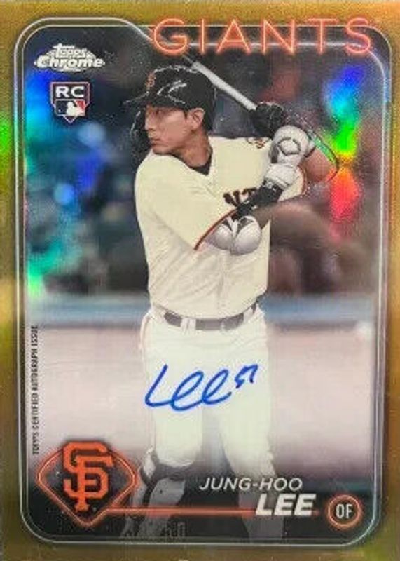 Auctions Ending Soon for Jung Hoo Lee 2024 Topps Chrome #RA-JHL Rookie Autographs - Gold Refractor /50 RAW