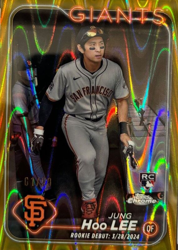 Auctions Ending Soon for Jung Hoo Lee 2024 Topps Chrome Update #USC185 Rookie Debut - Gold RayWave Refractor /50 RAW