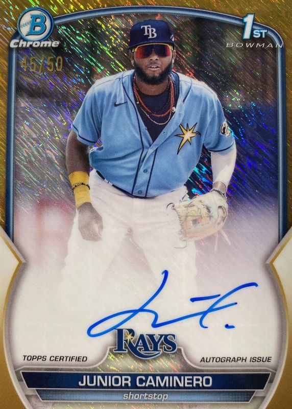 JUNIOR CAMINERO 2023 Bowman Chrome 1st GOLD SHIMMER Auto #43/50 Autograph RAYS