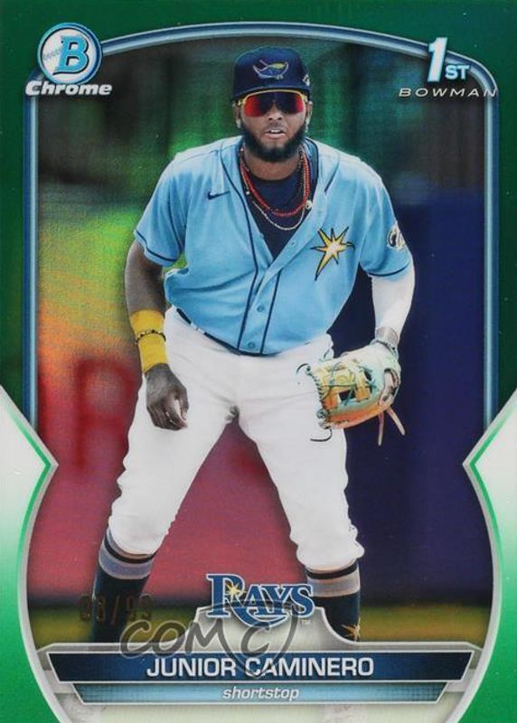 Junior Caminero 2023 Bowman #BCP-61 Chrome Prospects - Green Refractor /99 (1st) RAW Price Guide