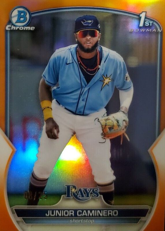 Junior Caminero 2023 Bowman #BCP-61 Chrome Prospects - Orange Refractor /25 (1st) RAW Price Guide