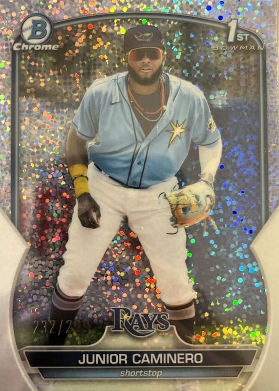 Best Prices Available For Sale of Junior Caminero 2023 Bowman #BCP-61 Chrome Prospects - Speckle Refractor /299 (1st)