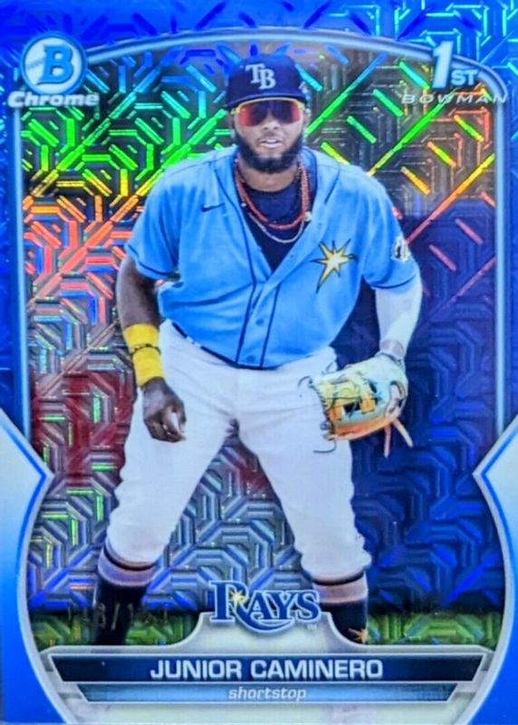 JUNIOR CAMINERO 2023 1st BOWMAN CHROME BLUE MEGA MOJO REFRACTOR ROOKIE CARD/150