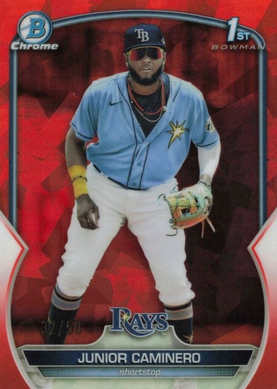 Best Prices Available For Sale of Junior Caminero 2023 Bowman Sapphire Edition #BCP-61 Chrome Prospects - Orange /50 (1st)