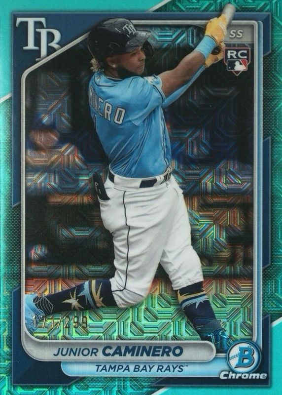 Recent Sales of Junior Caminero 2024 Bowman Chrome Mega Box #56 Aqua Mojo Refractor /299 Rookie Raw