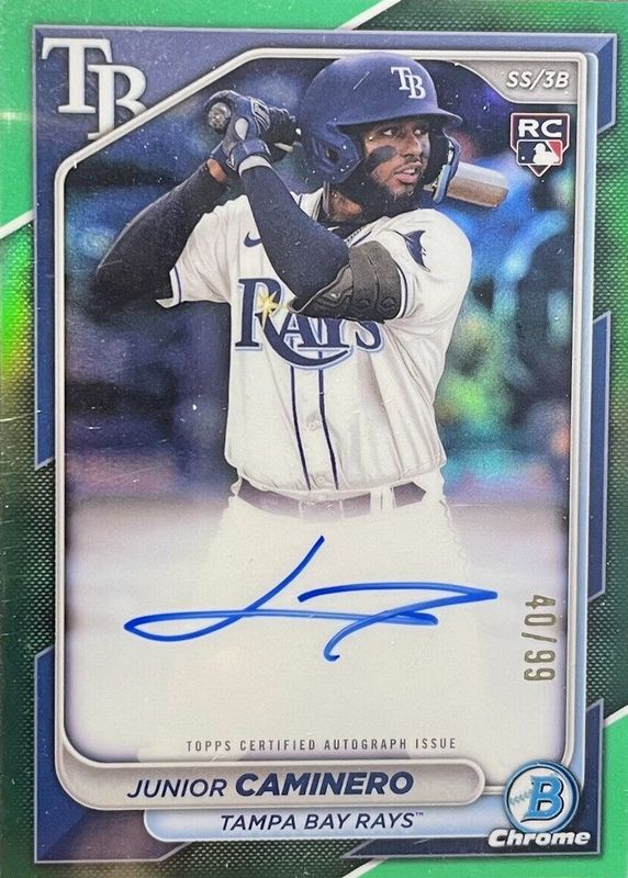 2024 Bowman Chrome Junior Caminero Green Refractor Auto #/99 CRA-JCA Rays RC