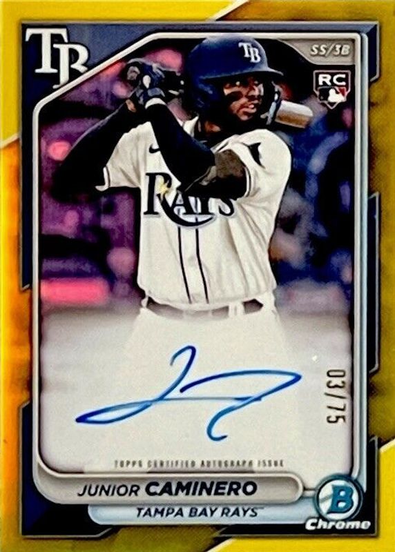 Junior Caminero 2024 Bowman #CRA-JCA Chrome Rookie Auto - Yellow Refractor /75